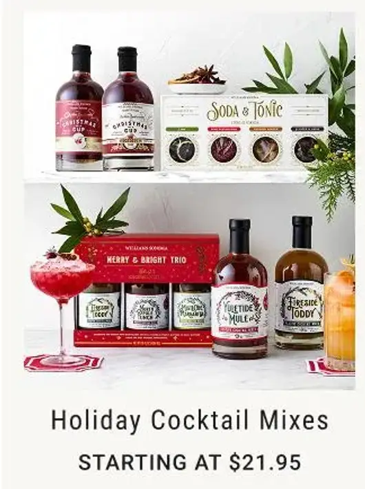 Save now! Shop in store and get holiday cocktail mixes starting at $21.95.